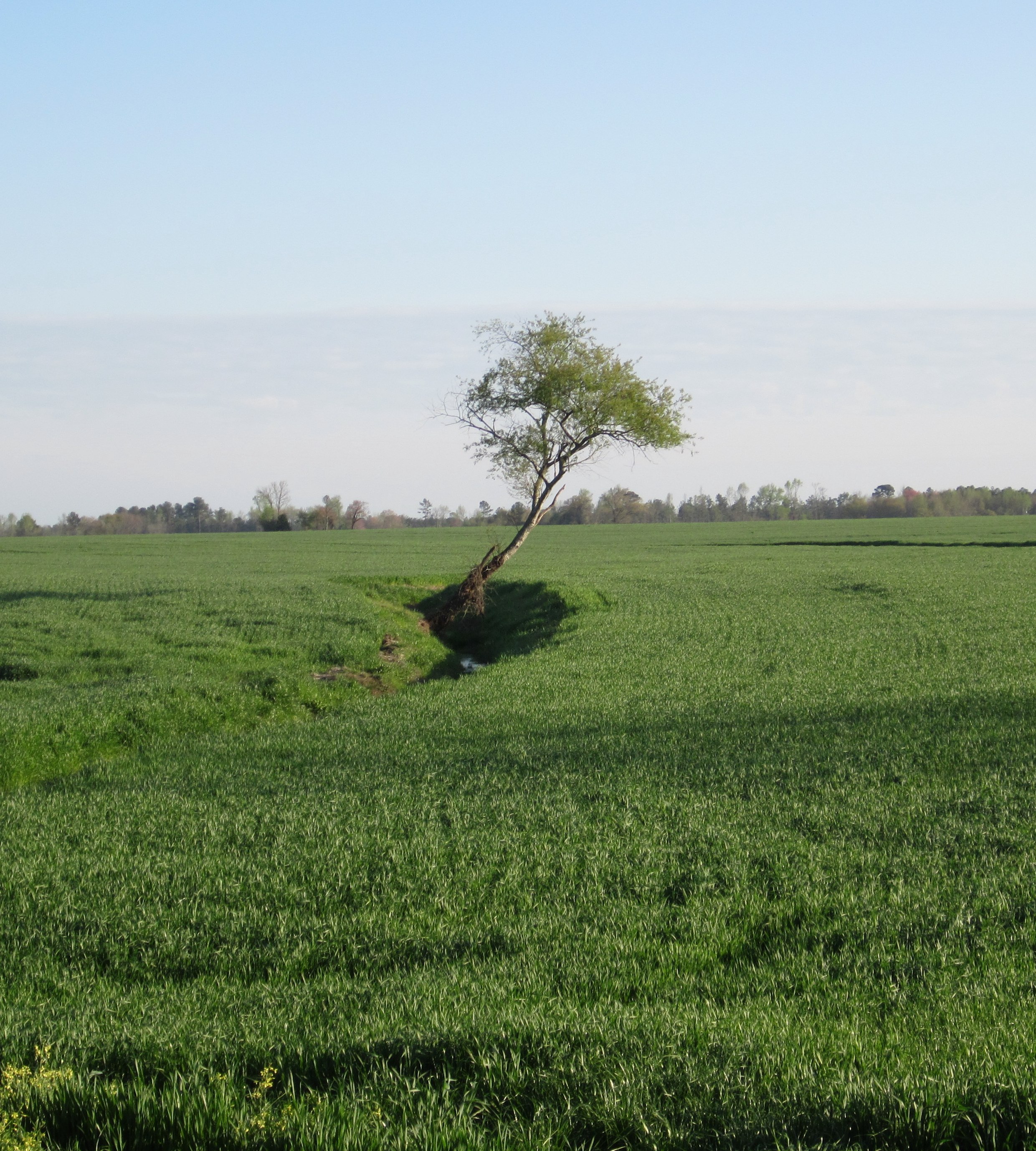 But if you look close, you’ll see how the tree made it. It’s growing out of the side of a ditch that runs through the middle of the field. It started growing sideways, but then turned to the sky.