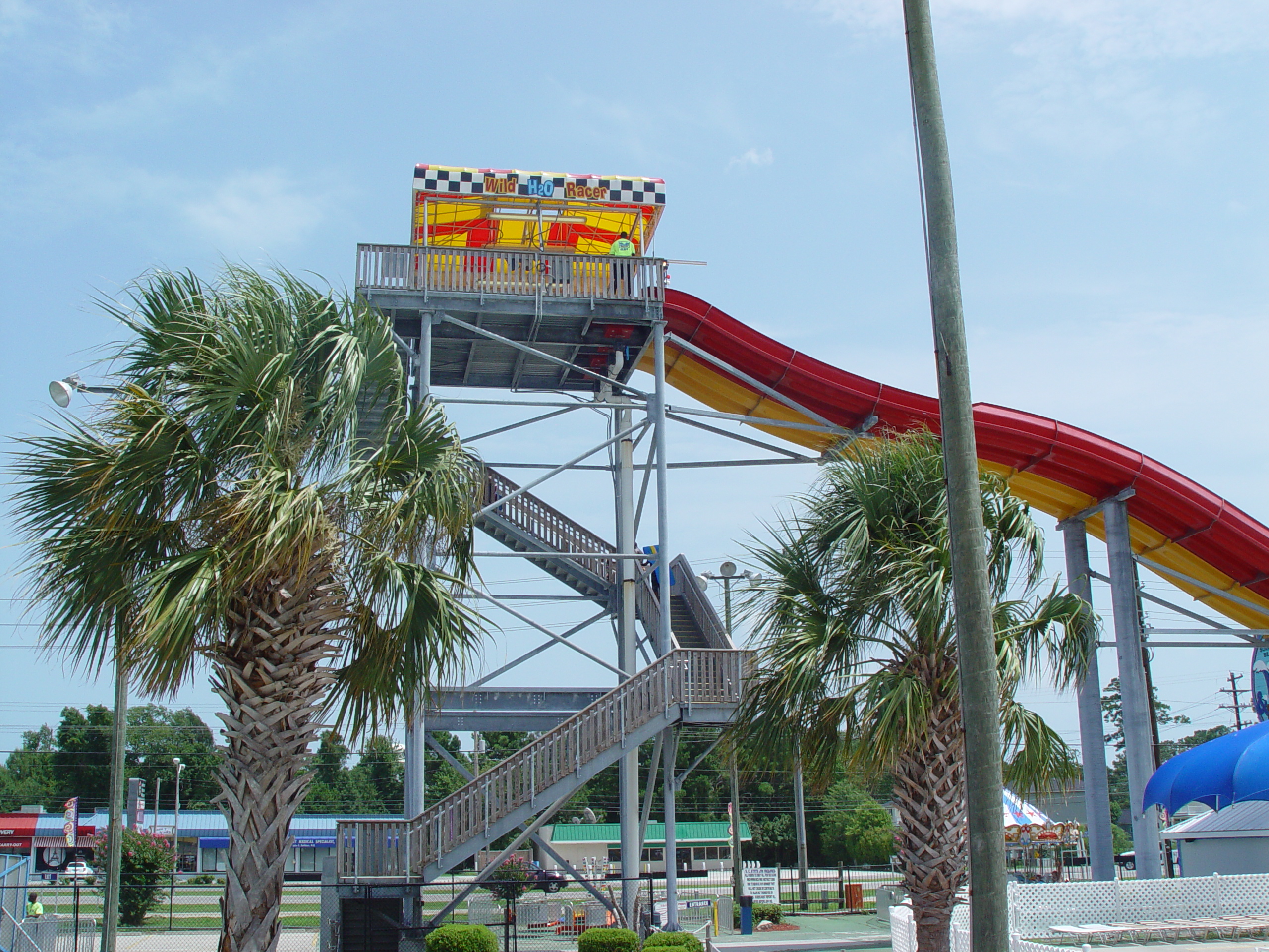 The thrill-seeking part of me always wins. So, I looked around for the scariest looking slide. After I spotted it, I announced that I wanted to ride it before we left. A short while later, I was climbing a long set of stairs that was much higher than it looked from the ground.